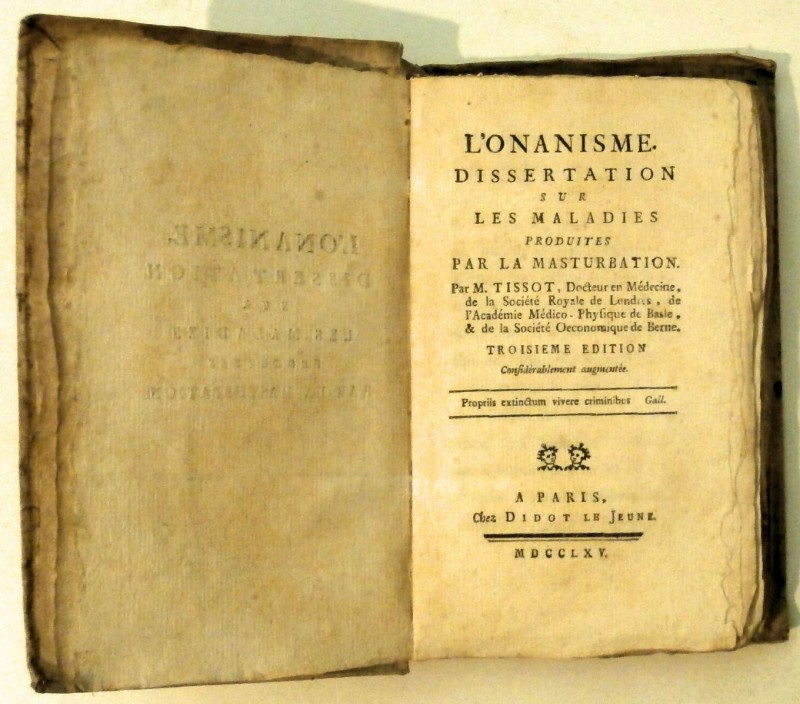 Vers 1760 un médecin suisse, Samuel Auguste Tissot, fait paraître un traité sur les fièvres bilieuses dans lequel est incorporée une annexe consacrée aux pratiques masturbatoires : « L’onanisme. Dissertation sur les maladies produites par la masturbation ». Tout comme l'auteur d'Onania, il y dresse un effroyable tableau de ses conséquences. Alors qu’il affirme être animé par le seul devoir scientifique, la morale chrétienne sourde tout au long de son ouvrage. La masturbation y est désignée comme l’abominable crime d’Onan, une infâme débauche, une souillure, une détestable expression de la luxure, autant de qualificatifs qui donnent au traité la couleur d'une version vaguement laïcisée de l’ancienne dénonciation ecclésiastique. D'ailleurs, si la notion de péché est remplacée par celle de pathologie, de maladie pernicieuse plus destructrice que la petite vérole, perdure l'idée qu'on ne saurait gaspiller pour un fugace plaisir solitaire la plus parfaite et la plus importante des liqueurs animales, la plus travaillée... la plus divine ?